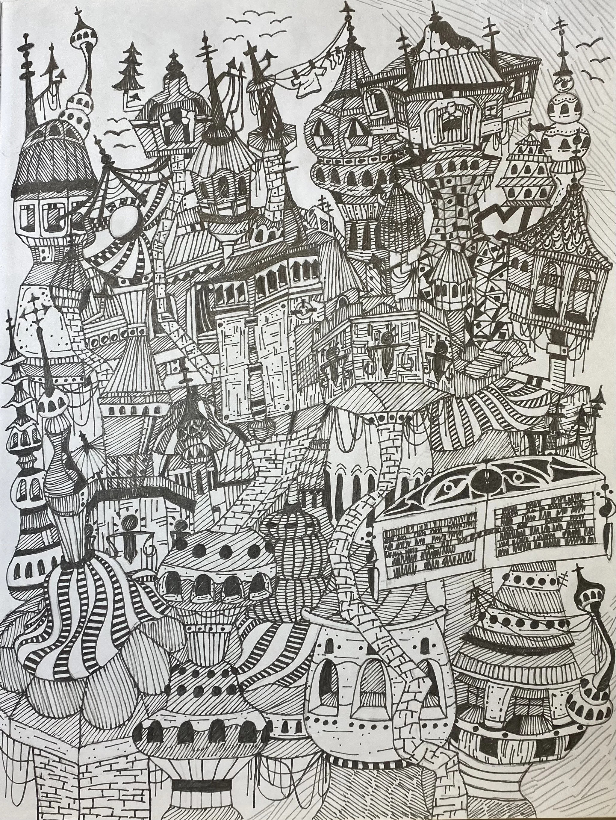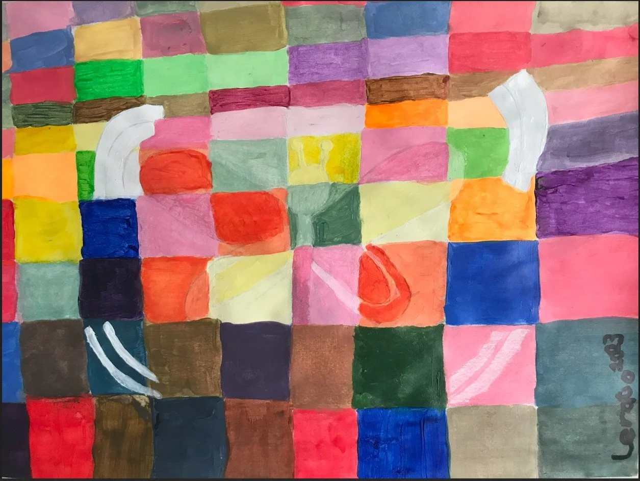 Gouache paint, crayon, color pencil, paper, 26.5cm x38cm, 2025